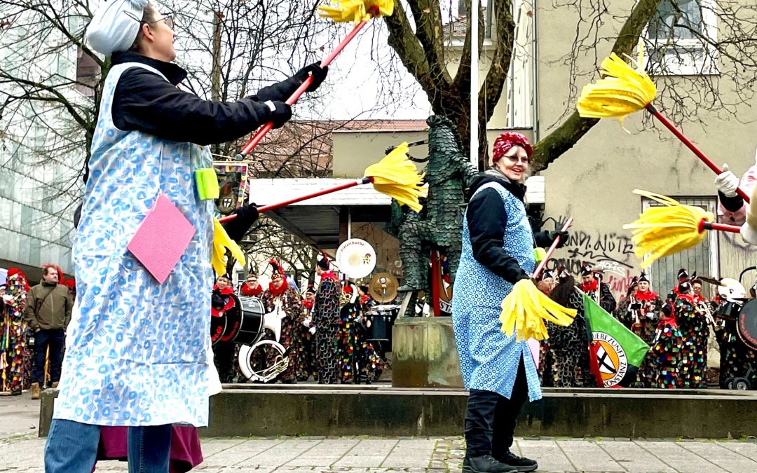 Mit vereinten Kräften wird der Blätzlebrunnen gereinigt und für die kommende närrische Zeit herausgeputzt – musikalisch begleitet, mit Showeinlagen vom Laternentanz auf und der Fahnenschwinger. Auch die Putzfrau mit ihren Reimen darf natürlich nicht fehlen.